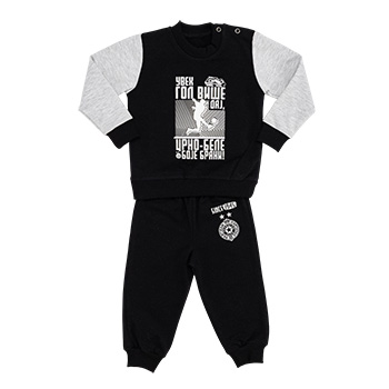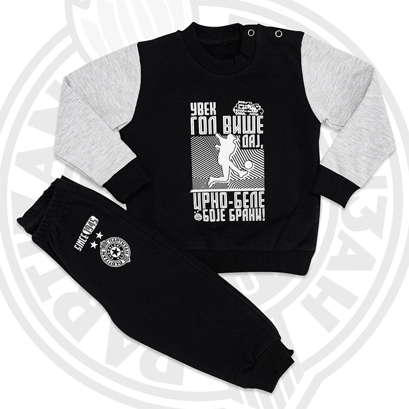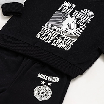 Dečija trenerka Partizan od 100% pamuka, topla i udobna za zimu. Za male navijače koji uvek daju gol više – crno-bele boje brani!