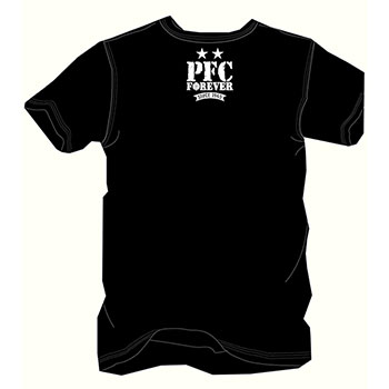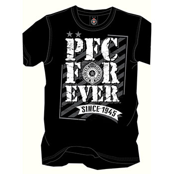 Црна дечија мајица са натписом преко скоро целе предње стране ПФЦ ФОРЕВЕР.