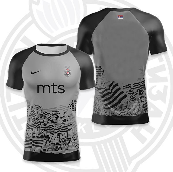Nike Navijački dres FK Partizan za sezonu 2022/2023, koji sadrži simbole južne tribine u donjem delu dresa.