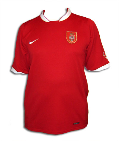 Isti dres kao dres u kojem nastupaju "Beli orlovi" - crveni dres sa belom kragnom, izvezenim grbom fudbalskog saveza na grudima i 4S na leđima.