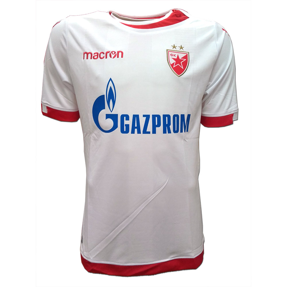 New Macron Red Star jersey, in which players will compete in the season 2017/18. Jersey has a printed logo of Gazprom, embroidered emblem of Macron on the chect and printed on the sleeves and club emblem is a combination of embroidery-jacquard.