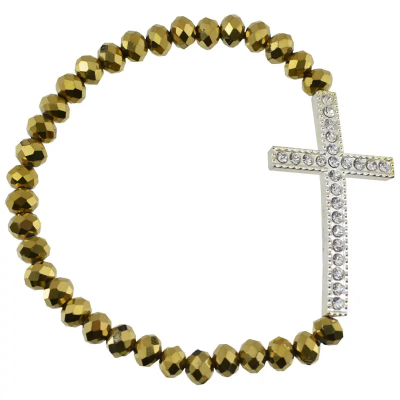 Brojanica od kristala sa metalnim krstićem - boje zlata
