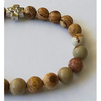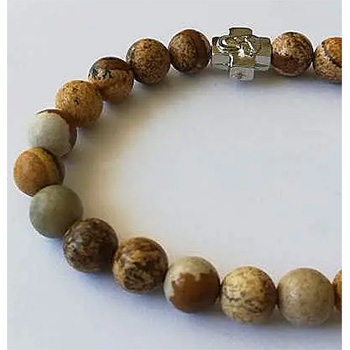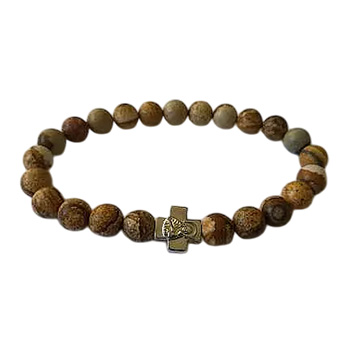 Brojanica za ruku je ručni rad napravljena od perli poludragog kamena ahata izgleda drveta sa metalnim krstićem.