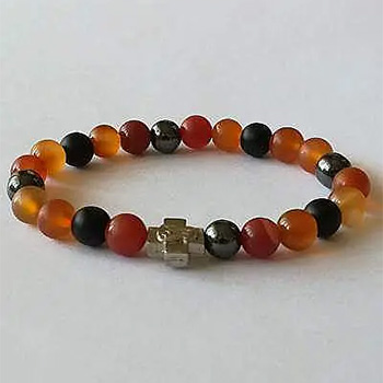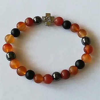 Brojanica za ruku je ručni rad napravljena od poludragog kamena karneola, mat oniksa i hematita.
