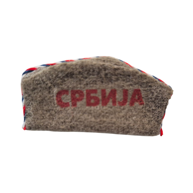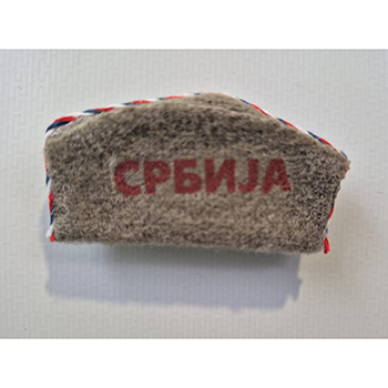 Magnet za frižider sa malom zimskom šajkačom na kojoj je natpis Srbija.
