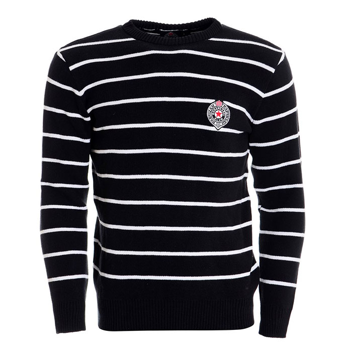 Black sweater with thin white stripes. BC Partizan emblem on the chest.