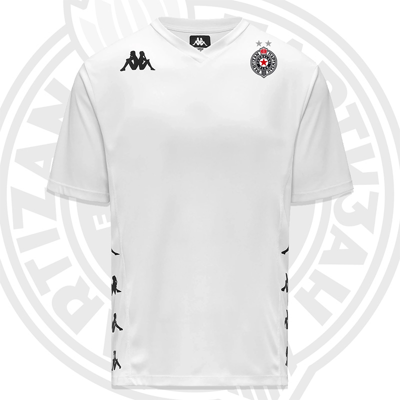 Kappa Omini logo na prednjoj strani, grb FK Partizan u koloru i Omini traka odštampana na bokovima.