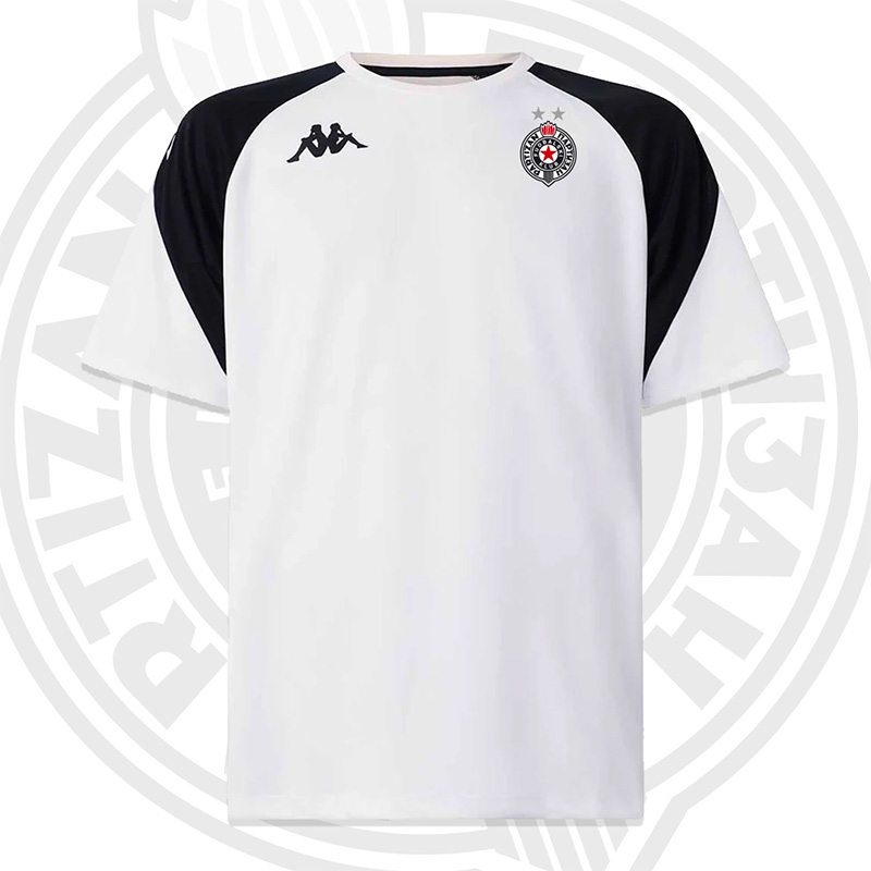 Grb FK Partizan i kapa Omini logo odštampani na grudima i rukavima.