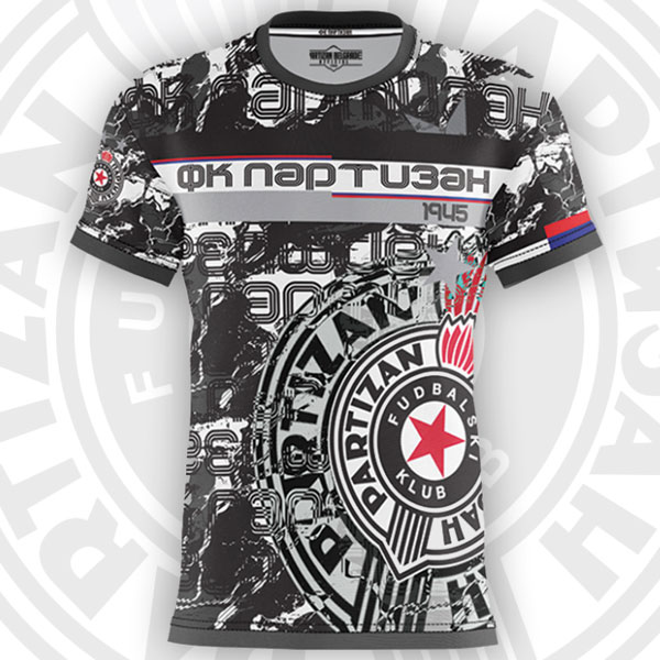 Nova navijačka dres-majica sa simbolima Grba FK Partizan. Na rukavu je zastava Srbije.