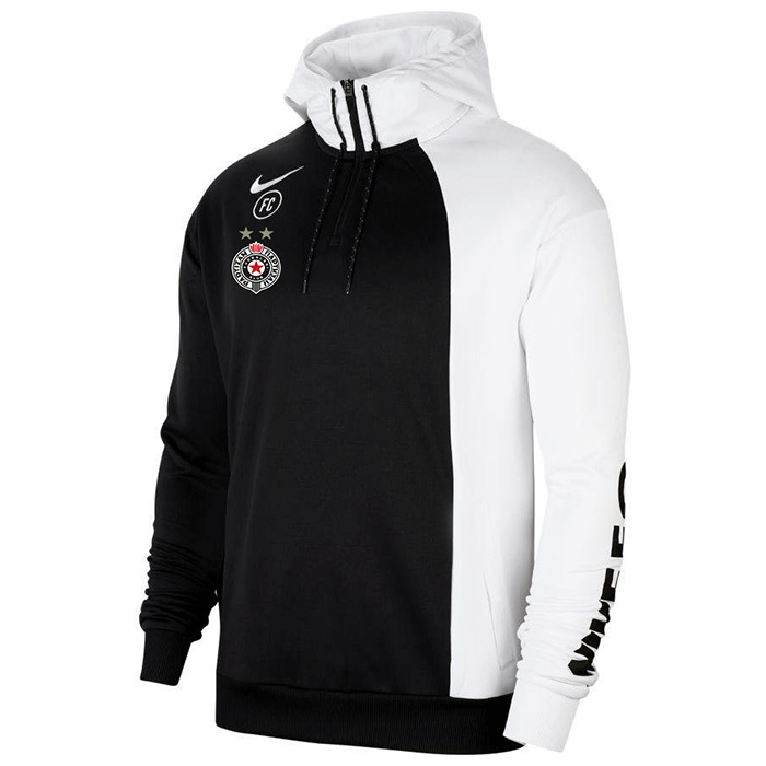 Deo duksa crne, a deo sa kapuljačom bele boje. Na grudima logo Nike i grb FK Partizan. Na rukavu natpis NIKE FC.