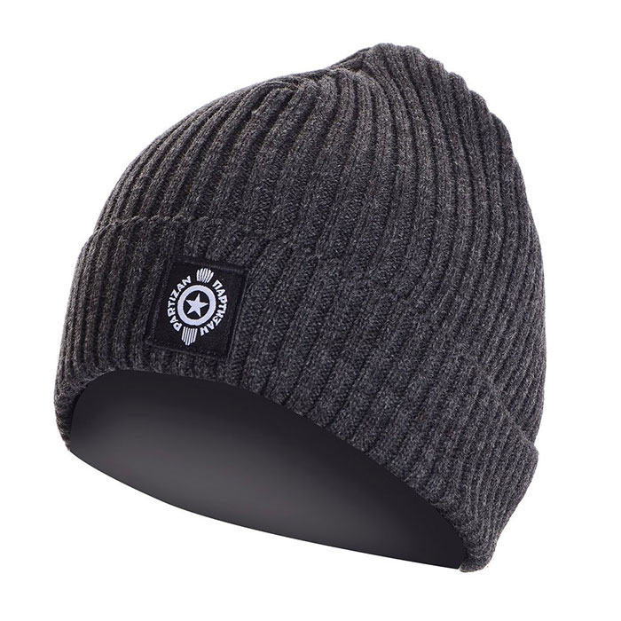 Tamno siva zimska kapa na preklop sa grbom KK Partizan.