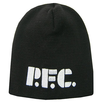 Crna zimska kapa sa logotipom PFC iz davne 1989. godine. Tačno pre 25 godina, na Partizanovoj utakmici pojavila se zastava sa ovim logotipom.