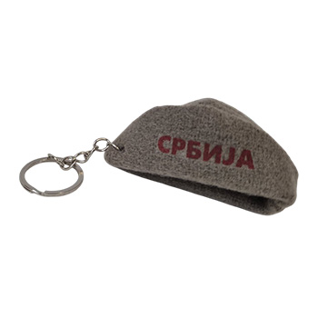 Privezak za ključeve sa malom zimskom šajkačom na kojoj je natpis Srbija.