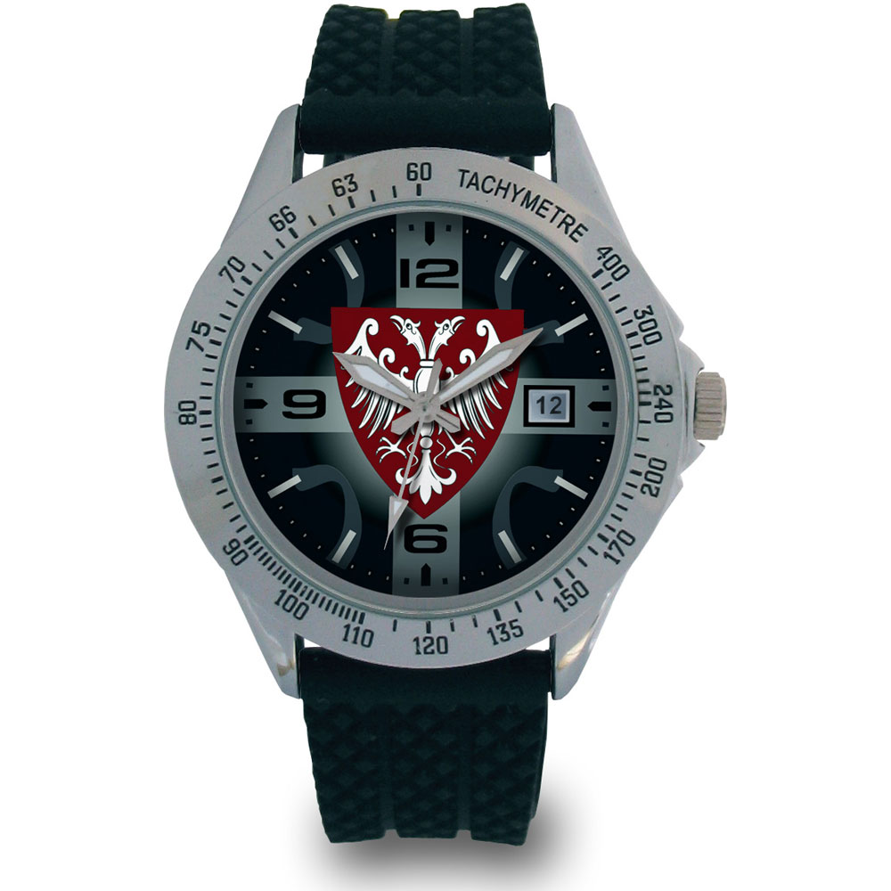 Ručni kvarcni sat sa datumom i aplikacijom - Grb Nemanjića sa crvenim štitom