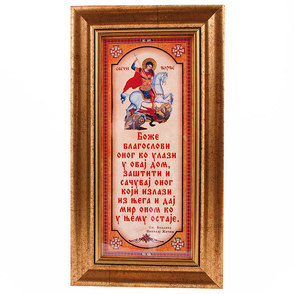 Board blessing made with laminating techniques. The frame is made of wood and is glazed.