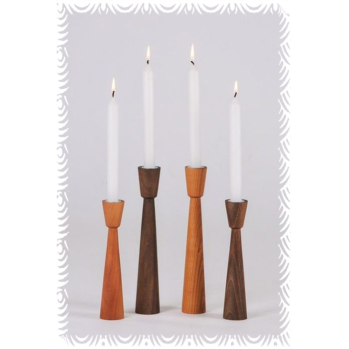 At the bottom is a metal weight that gives stability to candlestick, and on the top there is a metal cap that does not allow wood to be damaged. It can be made of walnut or cherry wood.