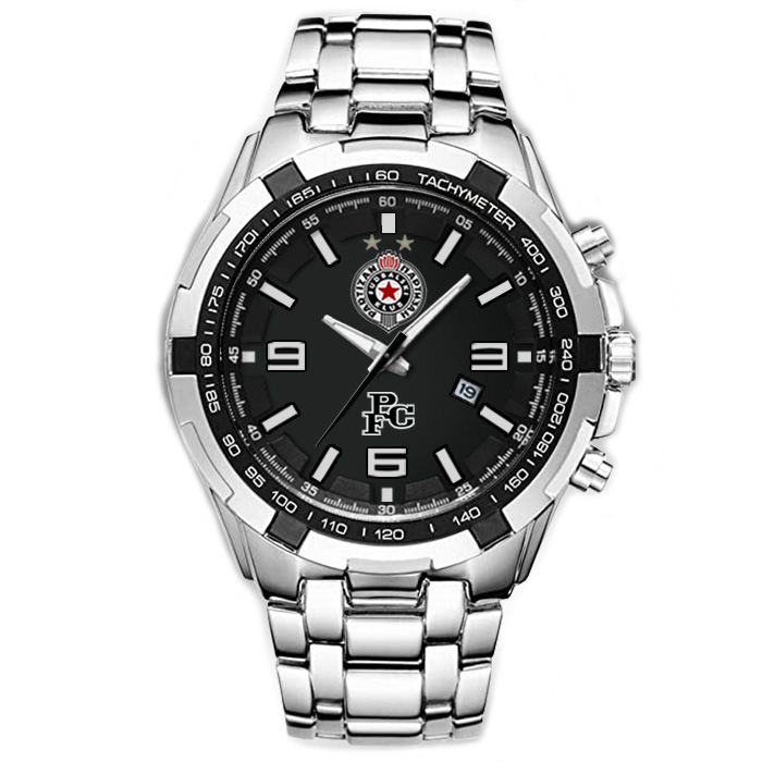 Muški ručni kvarcni sat sportskog izgleda, sa aplikacijom - mali grb FK Partizan i natpis PFC