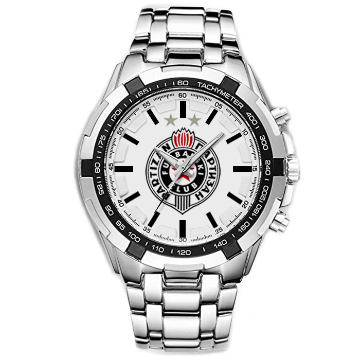 Muški ručni kvarcni sat sportskog izgleda, sa aplikacijom - veliki grb FK Partizan na sredini