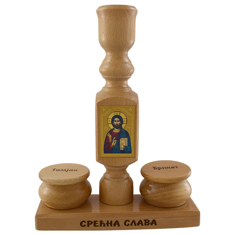 Drveni svećnjak sa kutijama za tamjan i briket "Isus Hrist"