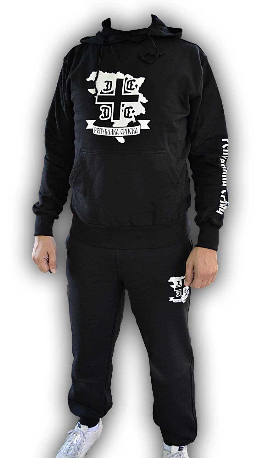Gornji deo moderne trenerka sa kapuljačom, džepovima sa strane i odštampanim natpisom REPUBLIKA SRPSKA, kao i mapom republike srpske sa srpskim ocilima (4C) na grudima, i natpisom REPUBLIKA SRPSKA na rukavu.